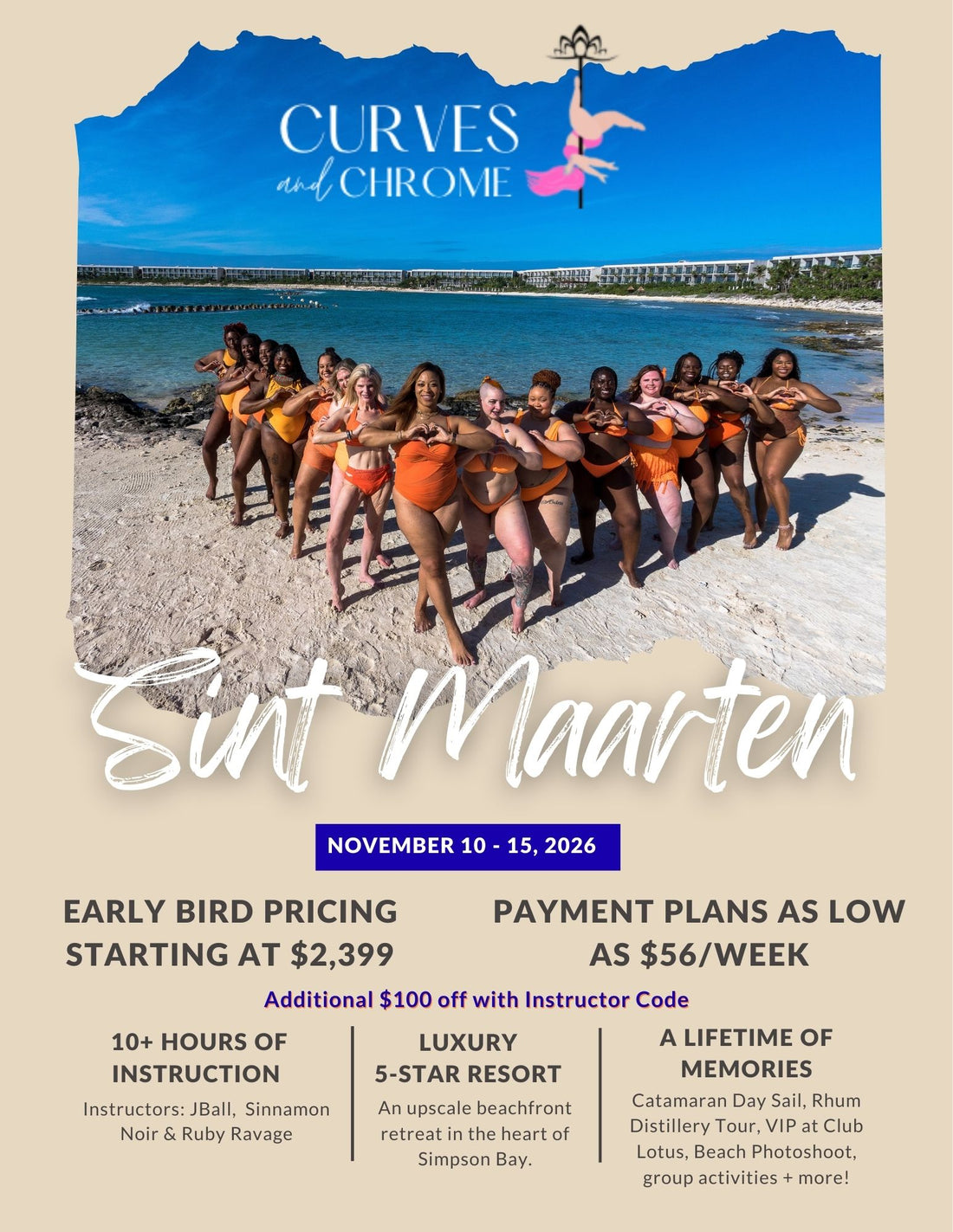 Each retreat features top-tier instruction from celebrated pole dancers and movement artists who look like us and understand the unique journey of dancing in our bodies. Beyond the studio, we cultivate real community through shared adventures, cultural exploration, and moments that become lifelong memories.